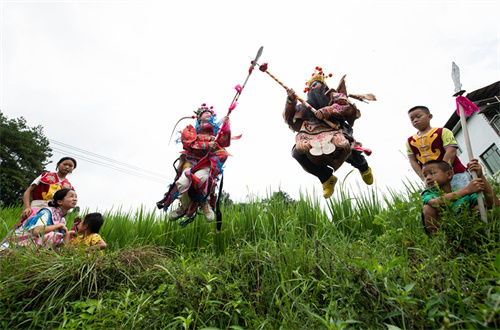 天柱縣渡馬鎮(zhèn)巖門村,小學(xué)員在排練。
