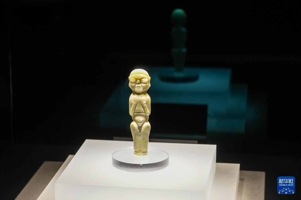這是8月3日在牛河梁遺址博物館拍攝的展品玉人。