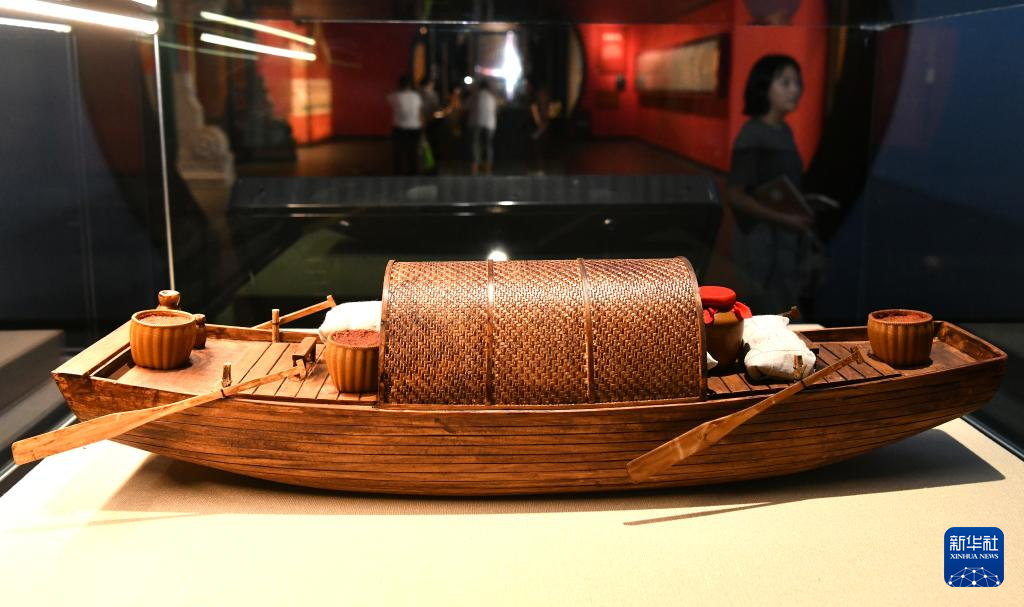 8月2日,游客在中國(guó)大運(yùn)河非物質(zhì)文化遺產(chǎn)展示館內(nèi)參觀。