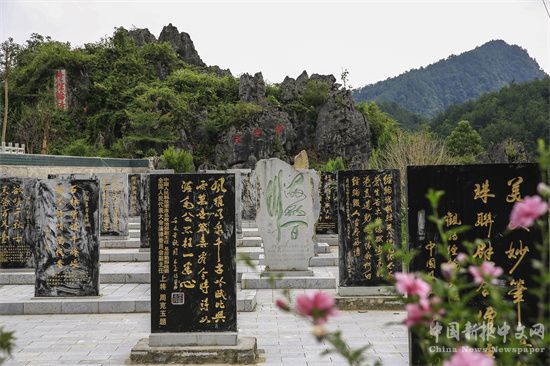 日游花山珍珠井,夜賞水關(guān)星宿巖。星宿巖位于集鎮(zhèn)西面,四周陡峭,獨(dú)立成峰,山巔有巨石呈兩個(gè)穿孔洞,在星宿巖左側(cè)是一片石林,人稱“花山”。2010年,松煙本土詩人毛依見此景獨(dú)特,在此建有黔北最大的碑林,將創(chuàng)作的《轉(zhuǎn)經(jīng)輪》愛情長詩,鐫刻在一米五高的70塊石碑之上,并將200余位名人詩評雕刻在山頭奇石之上,形成內(nèi)涵豐富的人文景觀。2012年,世界漢詩協(xié)會(huì)授予星宿巖碑林為“世界漢詩協(xié)會(huì)詩教基地”?;ㄉ饺缌?,星宿為文,松煙的山水仿佛也蘊(yùn)含了那一分歷久彌新的文脈。
