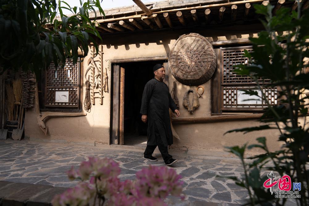 院中濃密的綠葉遮住了夏日的陽光,樹蔭下停放著馬車和待客的桌椅。院內(nèi)擺放著田間用的耬耙、背水用的木桶、吹火用的風(fēng)箱。墻上掛著煤油燈、打碾用的連枷、背草用的筐簍、砍柴用的斧頭、耕地用的鏵犁、木工用的推刨……儼然一個民族農(nóng)耕文化展。