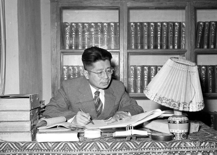 1956年,常書(shū)鴻在進(jìn)行文物研究工作。新華社記者 劉慶瑞 攝