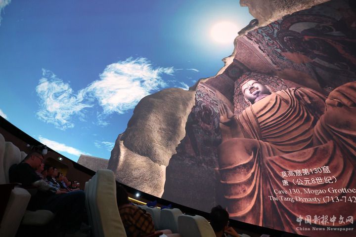 2024年9月4日,游客在莫高窟數(shù)字展示中心觀看球幕電影《夢(mèng)幻佛宮》。新華社記者 陳斌 攝