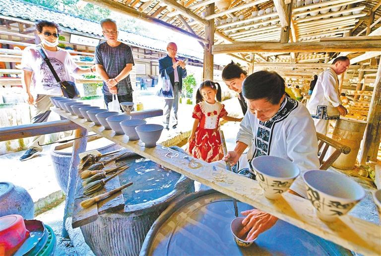 10月19日,嘉賓在景德鎮(zhèn)古窯民俗博覽區(qū)觀看陶瓷制作技藝。楊繼紅攝(中經(jīng)視覺)