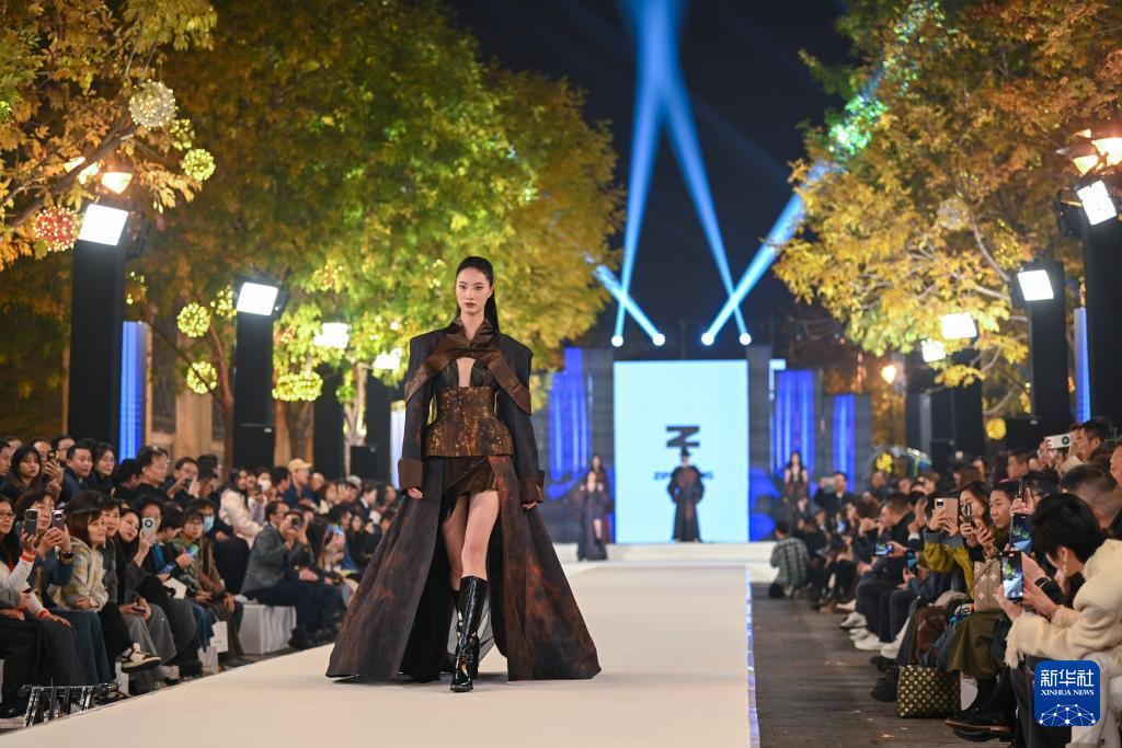 10月26日,模特在天津解放北路上搭起的T臺走秀。