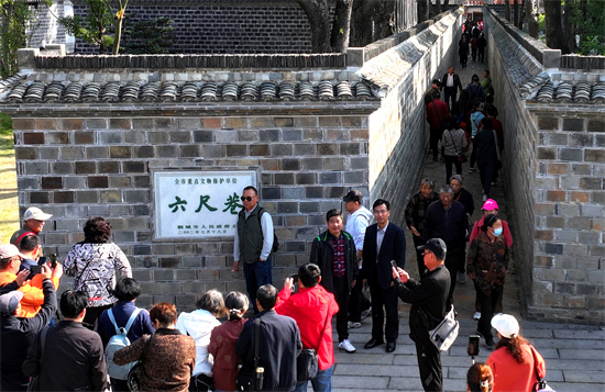 2024年11月5日,安徽省安慶市桐城市六尺巷,人頭攢動,游人不絕。本地市民和外地游客紛紛沿著總書記的足跡,走一走百米小巷,感受文都桐城的悠長文脈,摸一摸兩側(cè)磚墻,重溫傳統(tǒng)文化的禮讓之風,念一念“讓墻詩”,更加深刻領悟六尺巷的“窄”與“寬”。 (巢志斌 攝)