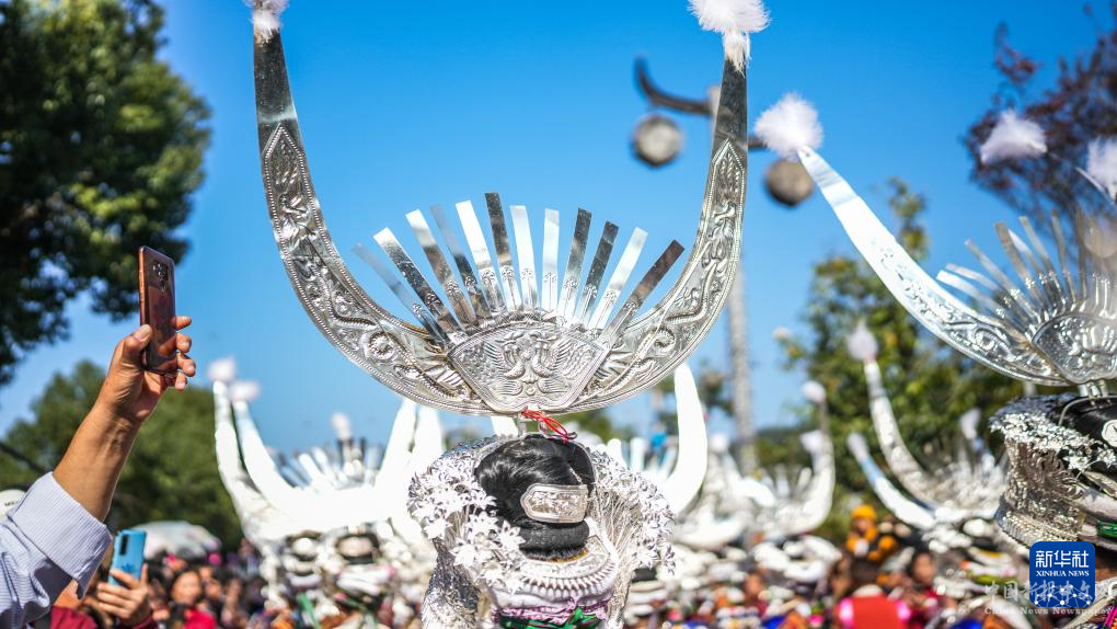 11月10日,游客在雷山縣參加苗年歡慶活動(dòng)。