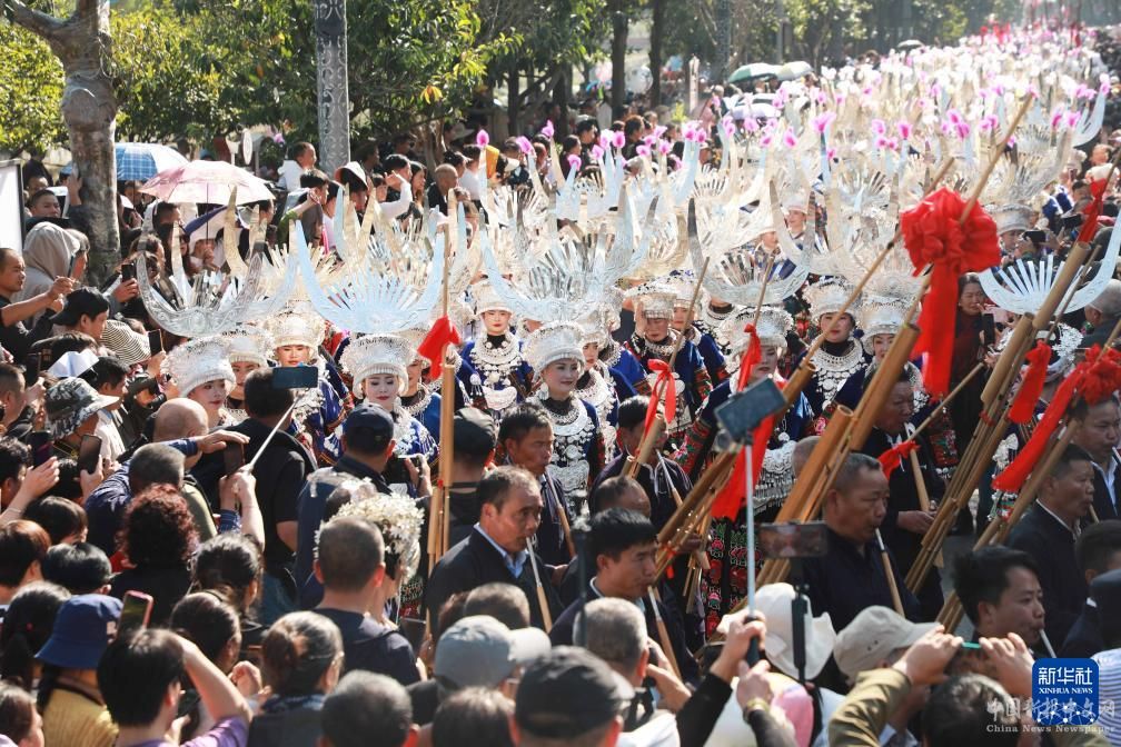 當(dāng)日,貴州省黔東南苗族侗族自治州雷山縣舉行慶苗年活動(dòng)。數(shù)萬(wàn)名苗族群眾歡聚雷山縣城,通過(guò)盛裝巡游、非遺展示、千人長(zhǎng)桌宴等形式歡度節(jié)日。苗年是苗族同胞集慶祝收獲、祭祀祖先、感恩天地為一體的盛大節(jié)日。2008年,苗年入選第二批國(guó)家級(jí)非物質(zhì)文化遺產(chǎn)代表性項(xiàng)目名錄。