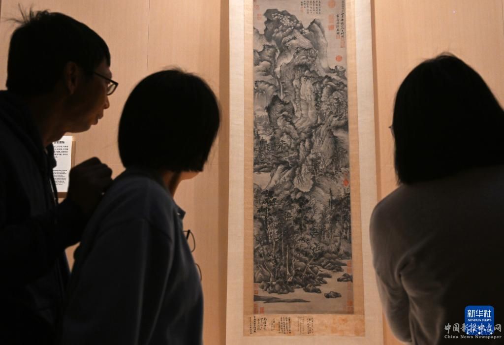 11月14日,在上海博物館東館中國(guó)歷代繪畫(huà)館,觀眾在元代王蒙的《青卞隱居圖》前駐足觀看。