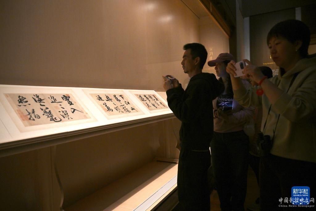11月14日,觀眾在上海博物館東館中國(guó)歷代書(shū)法館拍攝北宋米芾的《行書(shū)多景樓詩(shī)冊(cè)》。