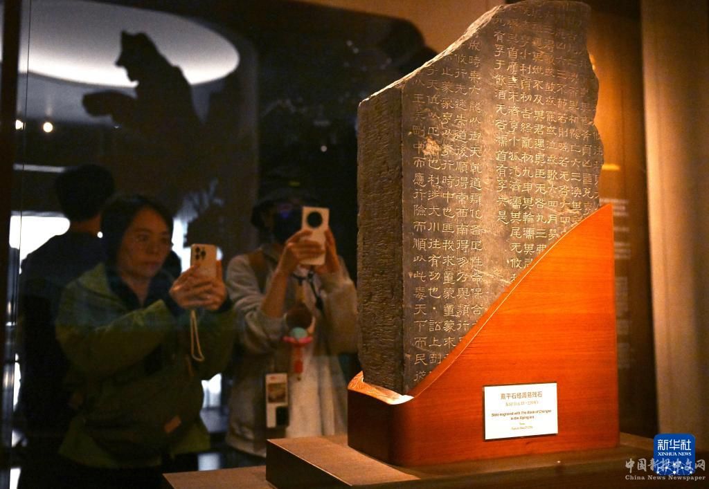 11月14日,觀眾在上海博物館東館中國(guó)歷代書(shū)法館拍攝東漢時(shí)期的《熹平石經(jīng)周易殘石》。