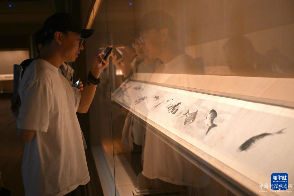 11月14日,觀眾在上海博物館東館中國(guó)歷代繪畫(huà)館拍攝清代朱耷的《魚(yú)鴨圖卷》。
