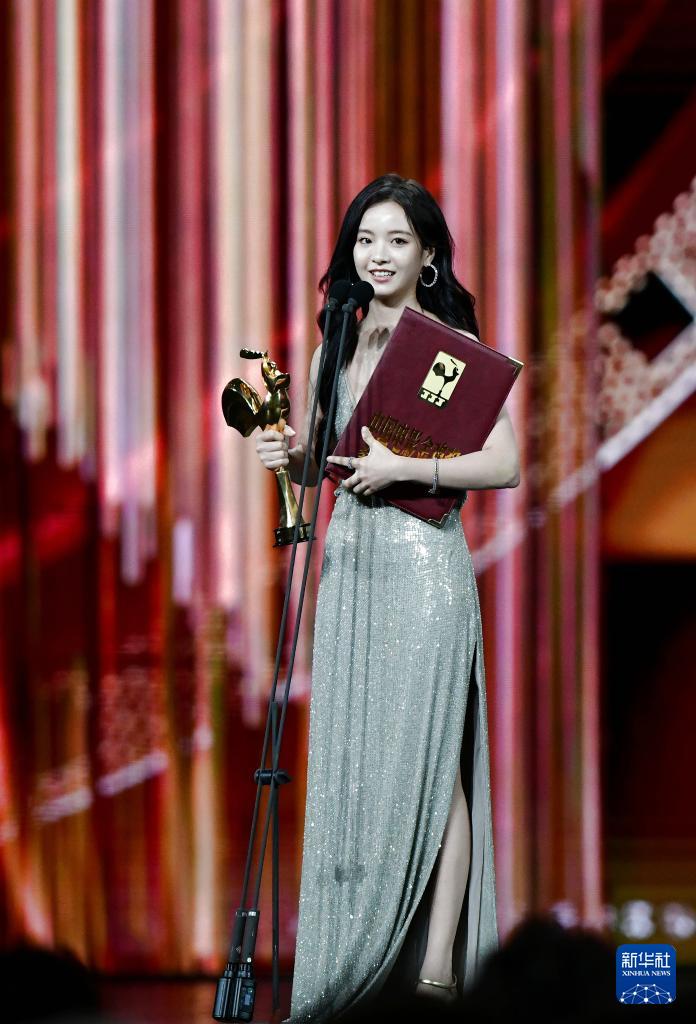11月16日,李庚希在臺(tái)上領(lǐng)獎(jiǎng)。李庚希獲最佳女主角獎(jiǎng)。