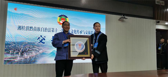 麻陽(yáng)苗族自治縣政協(xié)主席歐陽(yáng)海峰移交會(huì)徽給下一屆承辦方。