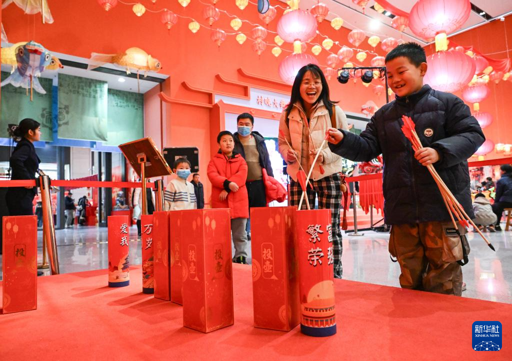 12月21日,觀眾在展廳內(nèi)互動體驗傳統(tǒng)節(jié)日項目——投壺。
