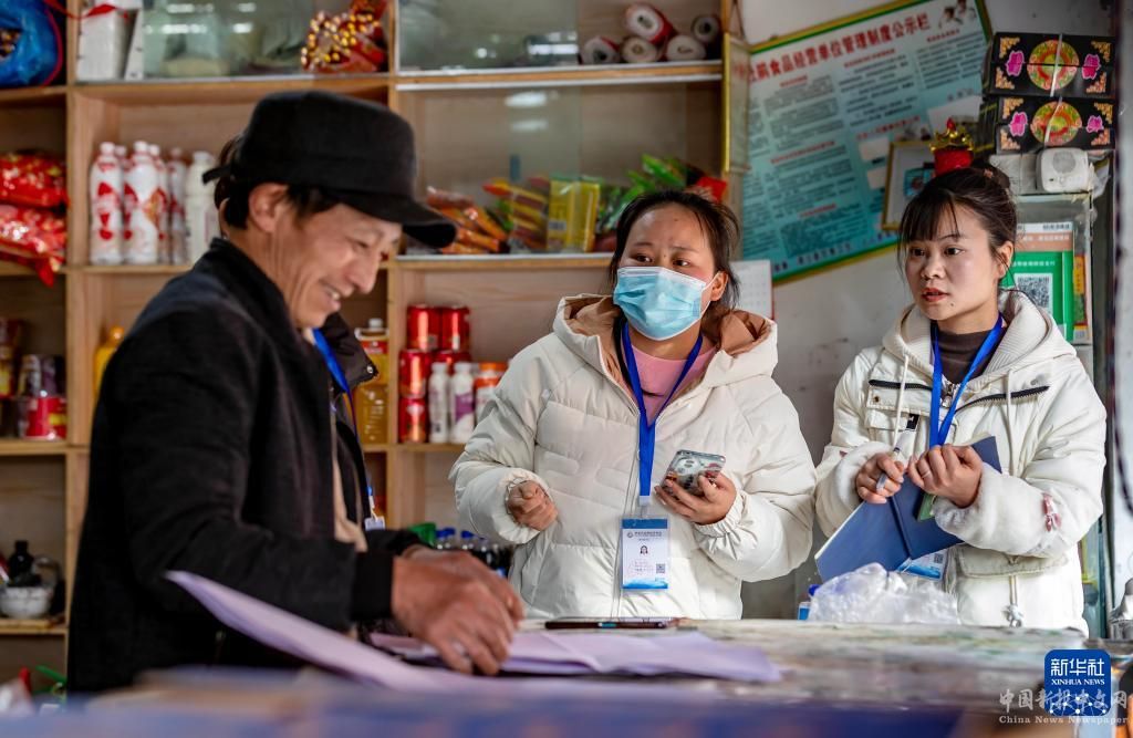 1月4日,普查員在貴州省畢節(jié)市百里杜鵑管理區(qū)在拱社區(qū)進行入戶現(xiàn)場登記。