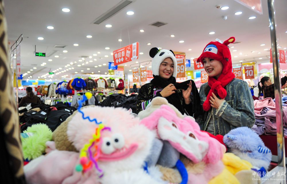 2023年11月26日,市民在貴州省黔東南苗族侗族自治州從江縣一家商店選購帽子。 新華社發(fā)(盧忠南 攝)