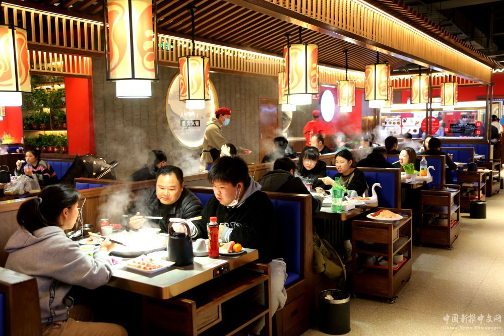 2023年11月26日,市民在江蘇省連云港市連云區(qū)一家火鍋店用餐。 新華社發(fā)(王春 攝)