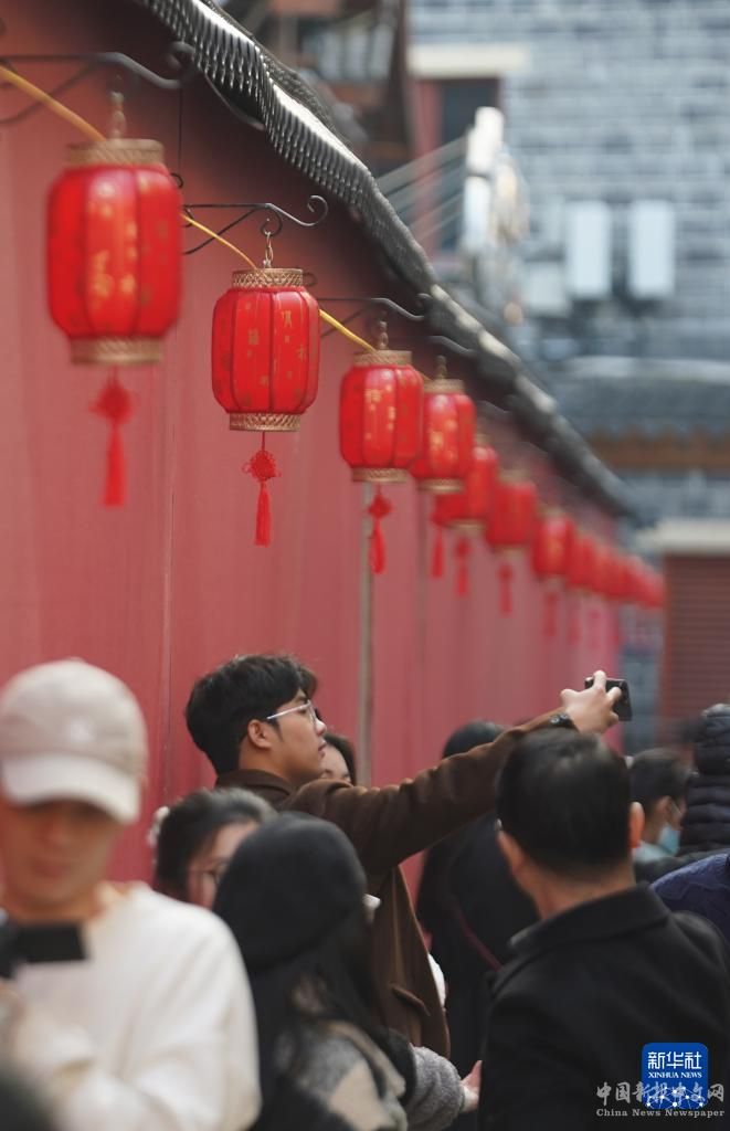 2月11日,游客在江西南昌萬壽宮歷史文化街區(qū)游玩拍照。