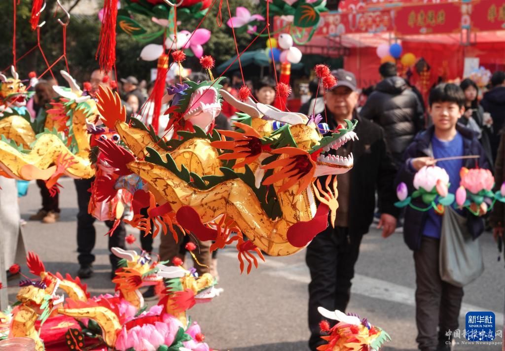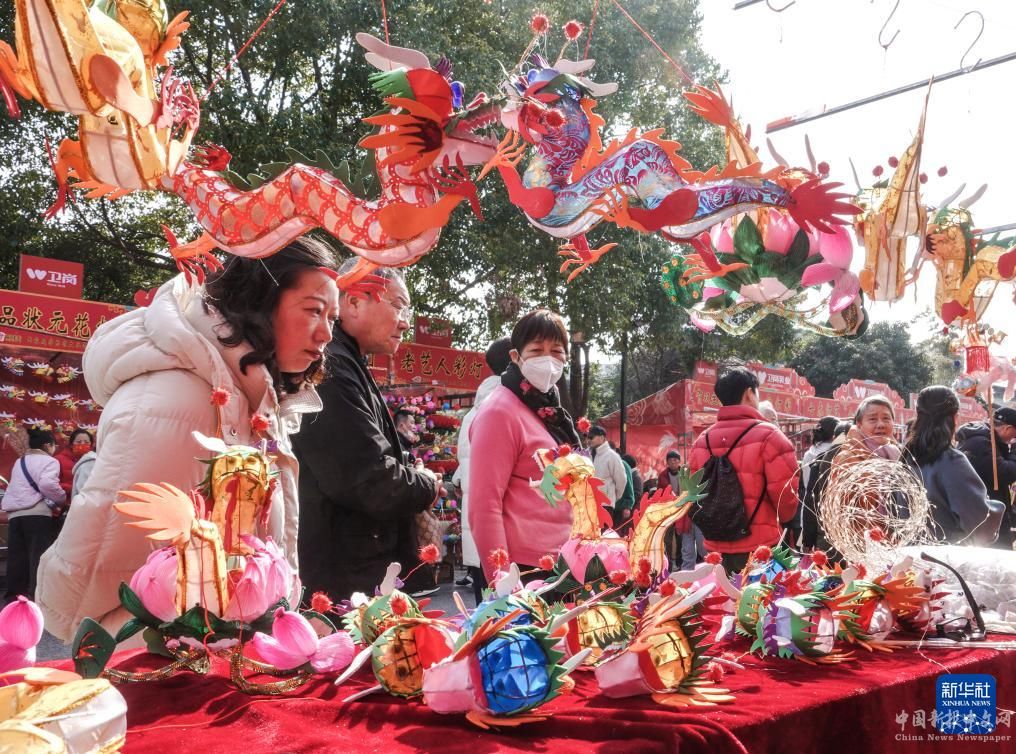 2月11日,游人在南京夫子廟花燈市場參觀、選購花燈。