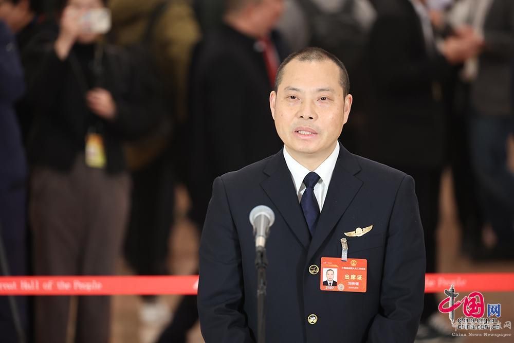 全國(guó)人大代表、中國(guó)民用航空飛行學(xué)院總飛行師劉傳健回答記者提問。中國(guó)網(wǎng) 倫曉璇 攝影