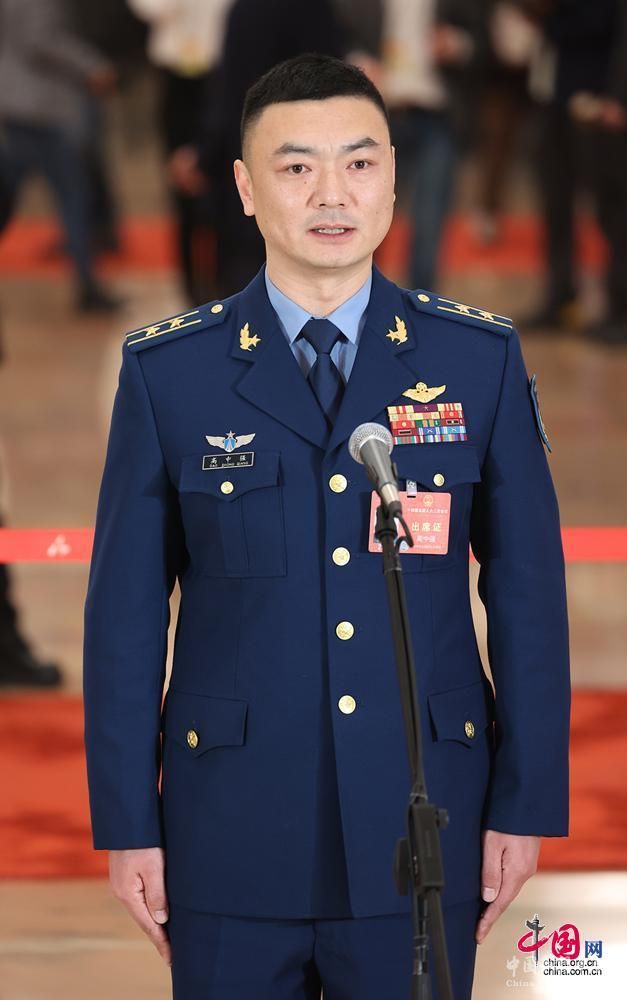 全國(guó)人大代表、空軍航空兵某旅副參謀長(zhǎng)高中強(qiáng)回答記者提問。中國(guó)網(wǎng) 倫曉璇 攝影