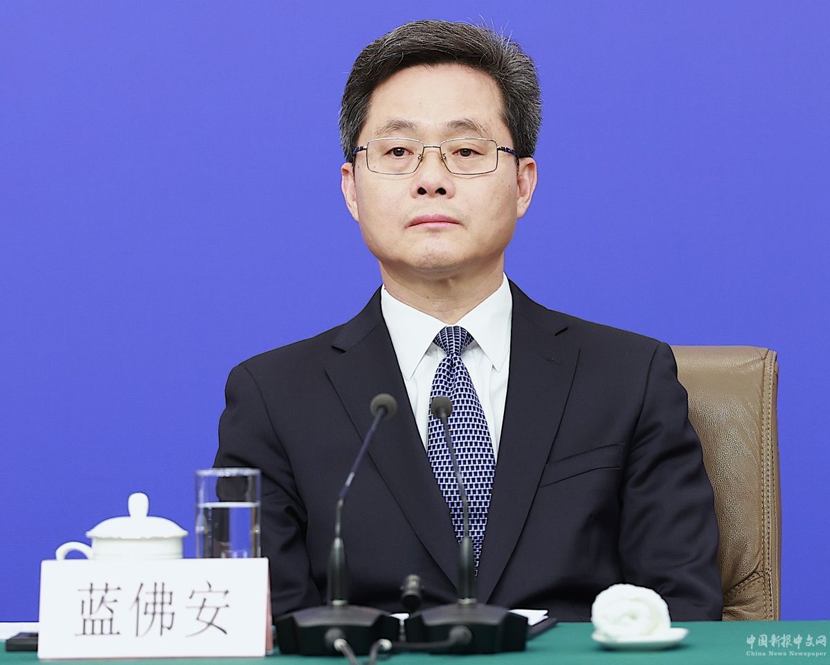 3月6日,財政部部長藍佛安在記者會上。中國日報記者 馮永斌 攝