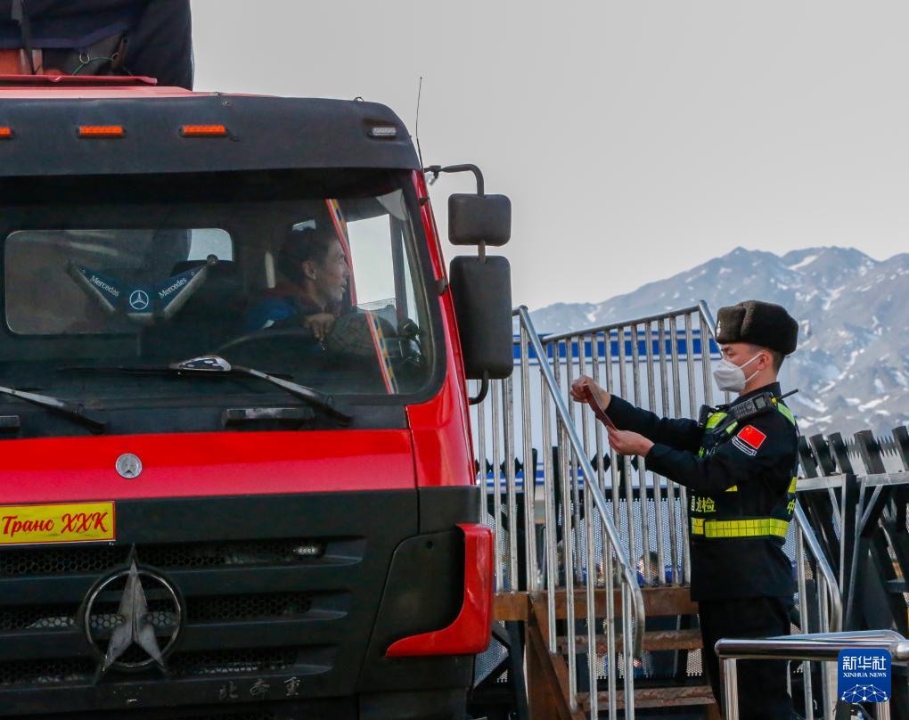 3月13日,車輛通過新疆塔克什肯口岸塘巴勒邊境檢查站。