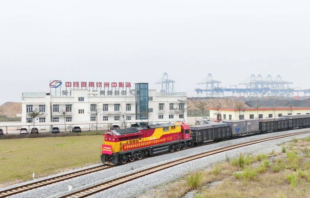 3月17日上午,一列滿(mǎn)載緬甸黑芝麻、海南椰子汁、廣西白糖等貨物的海鐵聯(lián)運(yùn)班列,從欽州鐵路集裝箱中心站緩緩發(fā)出駛向四川城廂站。這是2024年西部陸海新通道開(kāi)行的第2000列海鐵聯(lián)運(yùn)班列,同比增長(zhǎng)16.8%,提前14天完成一季度班列開(kāi)行任務(wù)。