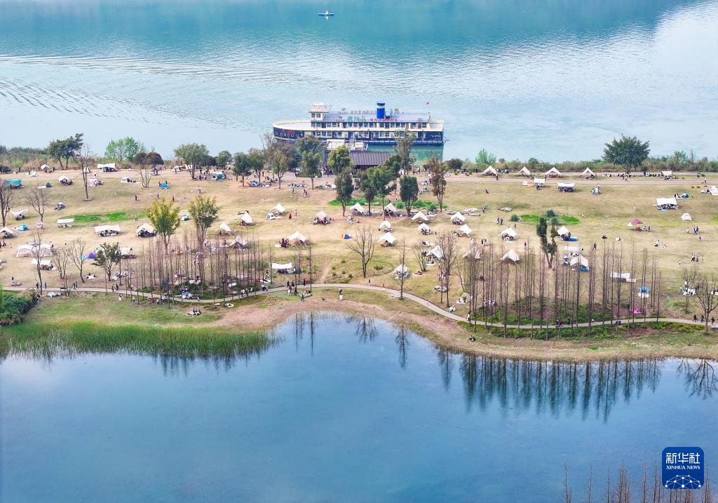 3月16日,游客在重慶廣陽島游覽、休閑(無人機(jī)照片)。新華社記者 王全超 攝