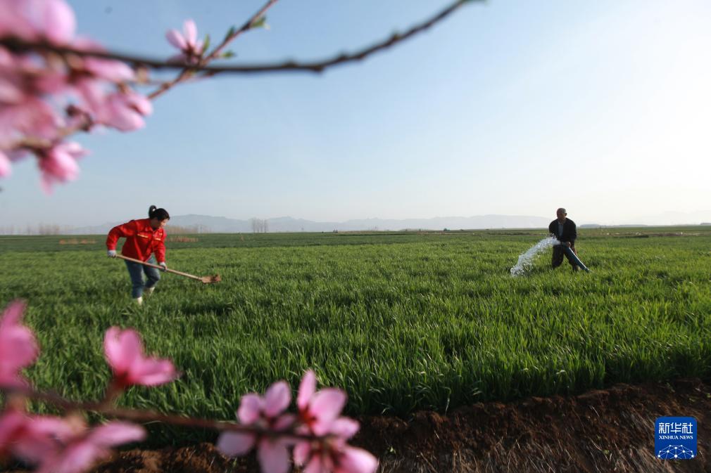 3月31日,山東省臨沂市平邑縣地方鎮(zhèn)東家莊村村民在澆灌小麥。