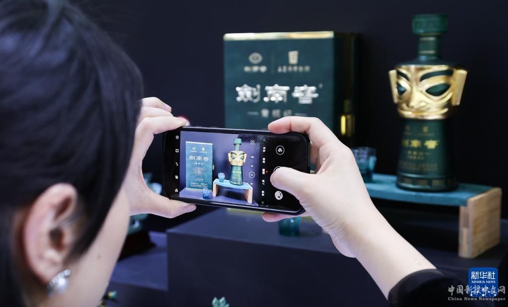 4月13日,觀眾在消博會現(xiàn)場拍攝展出的三星堆文創(chuàng)產(chǎn)品。
