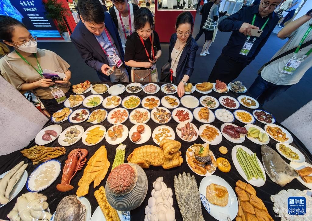 4月13日,觀眾在觀看由壽山石雕刻的“滿漢全席”。