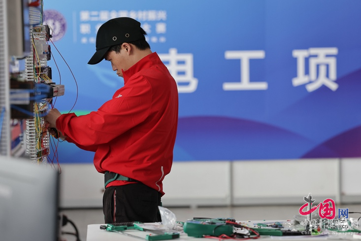 第二屆全國鄉(xiāng)村振興職業(yè)技能大賽電工項目比賽現(xiàn)場。中國網記者 董寧 攝影