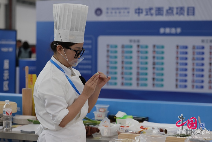 第二屆全國鄉(xiāng)村振興職業(yè)技能大賽“中式面點”賽項現(xiàn)場。中國網(wǎng)記者 董寧 攝影