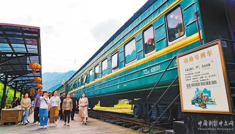 5月22日,游客在浙江省舟山市定海區(qū)新建村火車廣場參觀“功勛號”列車。定海區(qū)通過整合觀景大壩等資源,積極發(fā)展農(nóng)文旅產(chǎn)業(yè)。