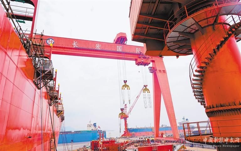 5月22日,舟山長宏國際船舶修造有限公司一派繁忙景象。近年來,該公司全面推動中大型集裝箱船、油輪建造能力的提升。