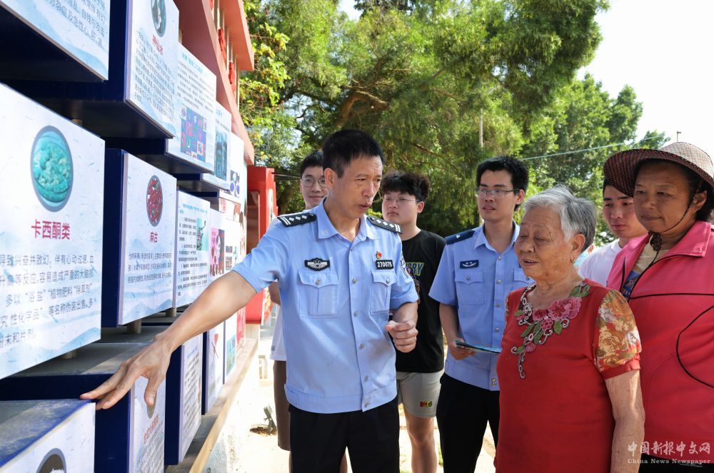 2023年6月4日,在廈門市翔安區(qū)大宅社區(qū),民警向社區(qū)群眾介紹毒品的性質(zhì)、種類、危害及防范措施。新華社記者 魏培全 攝