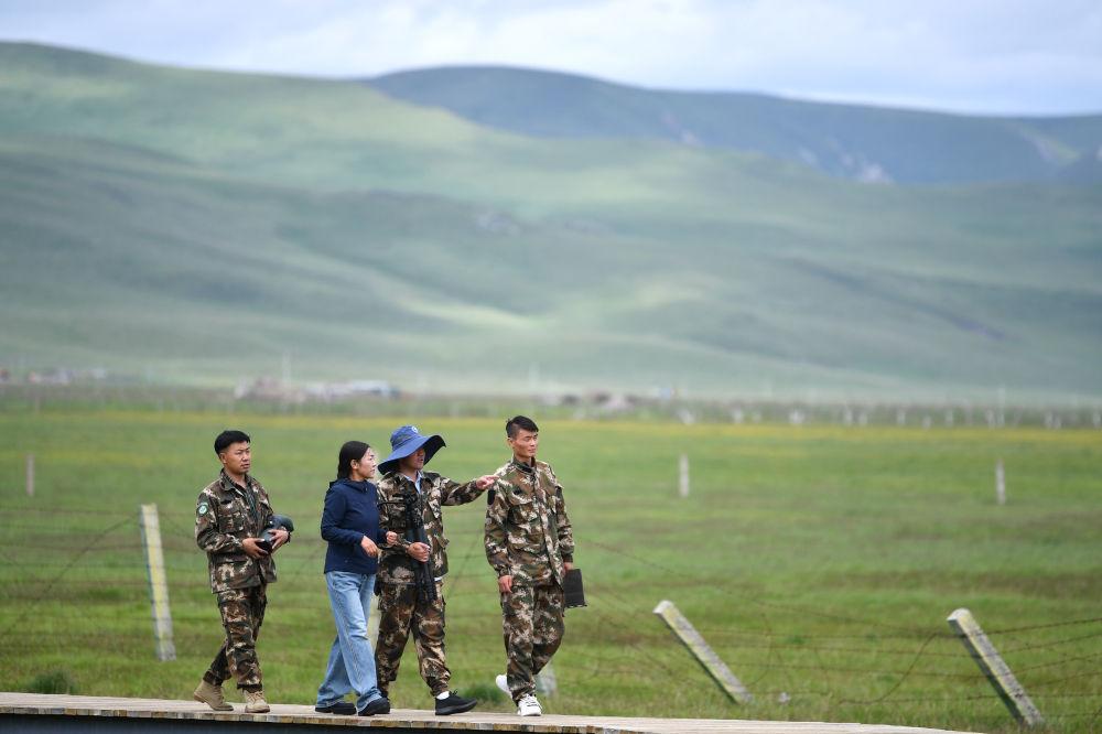 在位于甘肅甘南藏族自治州的尕海則岔國家級自然保護區(qū),管護中心尕海保護站的工作人員在保護區(qū)內巡護(2023年7月7日攝)。甘肅省甘南藏族自治州是黃河、長江上游重要的水源涵養(yǎng)和補給區(qū),擁有世界上保存最完好、生態(tài)功能最完善的濕地之一。新華社記者 陳斌 攝