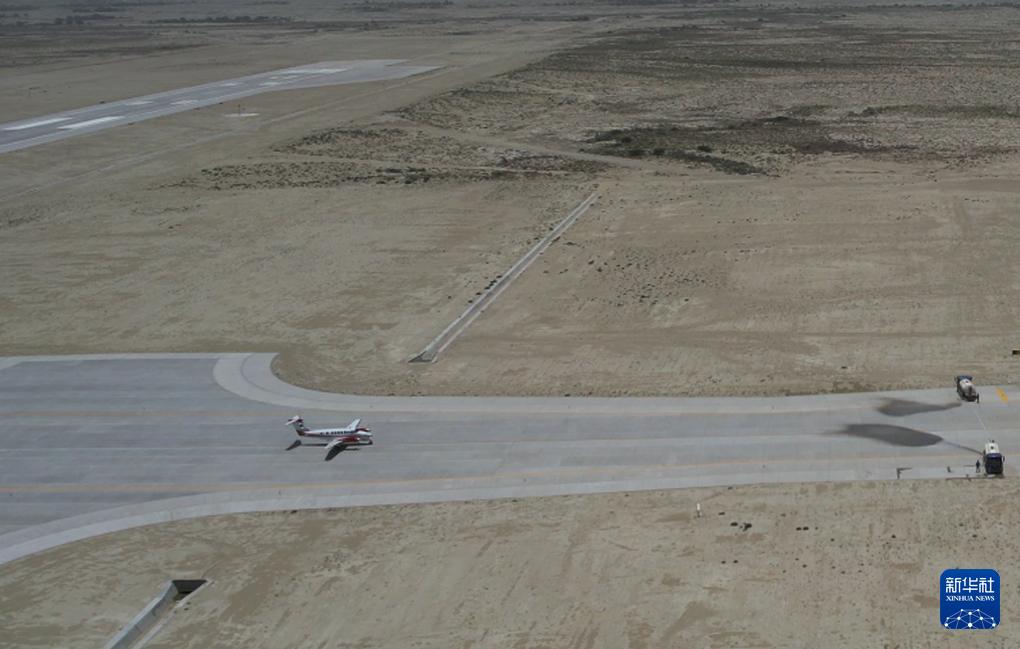 6月4日,在位于巴基斯坦瓜達(dá)爾的瓜達(dá)爾新國(guó)際機(jī)場(chǎng),進(jìn)行校飛試驗(yàn)的飛機(jī)成功著陸(無(wú)人機(jī)照片)。