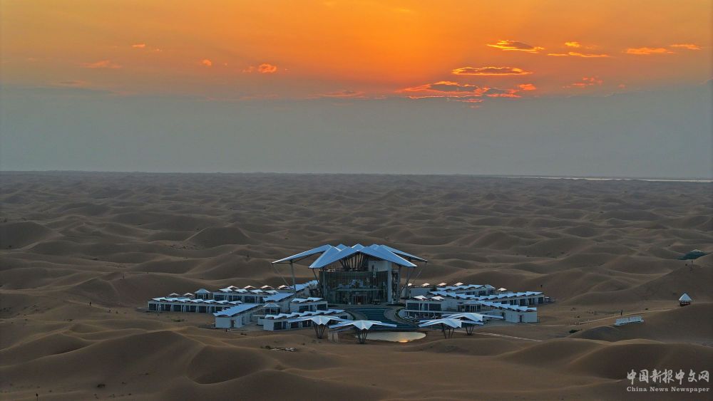這是位于寧夏中衛(wèi)市沙坡頭景區(qū)的星星酒店(2023年9月6日攝,無人機(jī)照片)。新華社記者 王鵬 攝