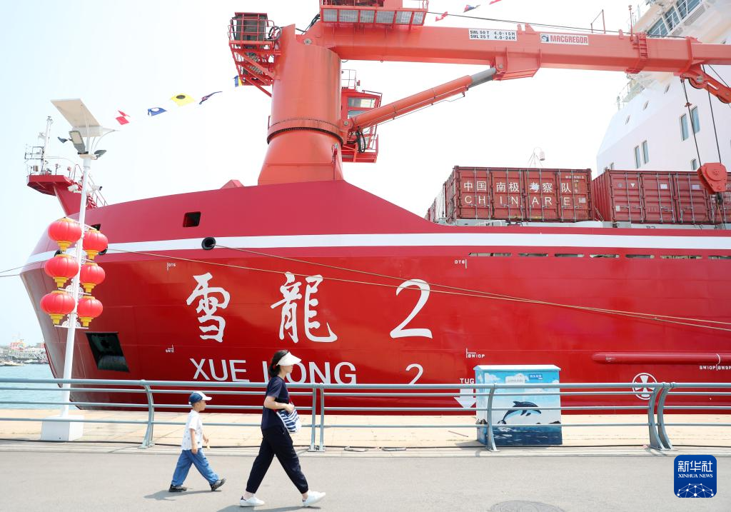 7月3日,“雪龍2”號(hào)科考破冰船靠泊在青島奧帆中心碼頭。