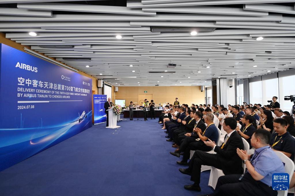 新華社天津7月8日電(記者宋瑞)8日,位于中國天津的空中客車A320系列飛機(jī)亞洲總裝線(以下簡稱“空客天津總裝線”)交付第700架A320系列飛機(jī)。