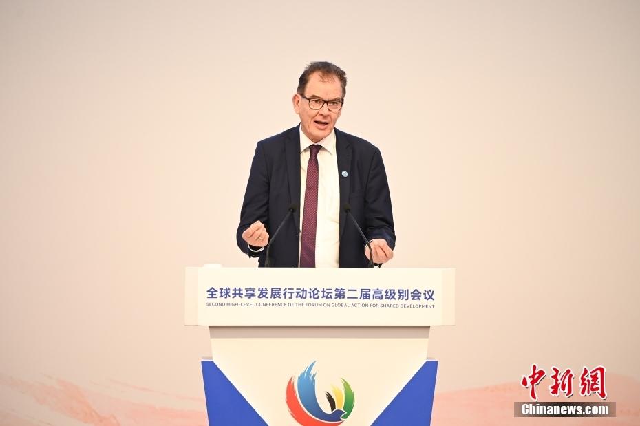 7月12日,全球共享發(fā)展行動(dòng)論壇第二屆高級(jí)別會(huì)議在北京舉行。圖為聯(lián)合國(guó)工業(yè)發(fā)展組織總干事穆勒在開(kāi)幕式上發(fā)言。中新社記者 田雨昊 攝