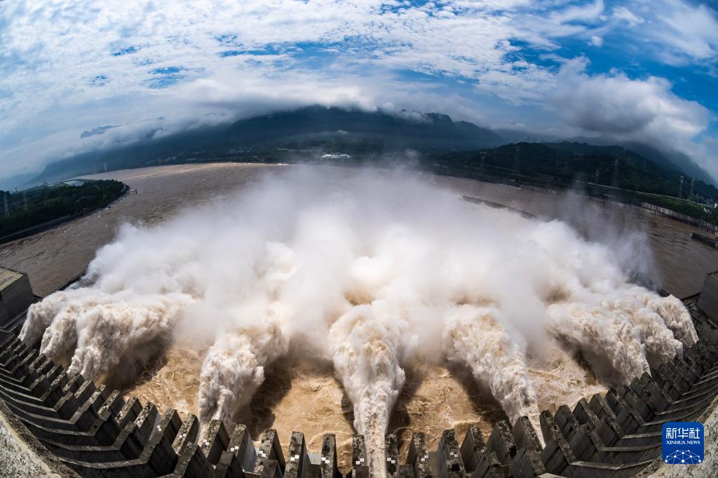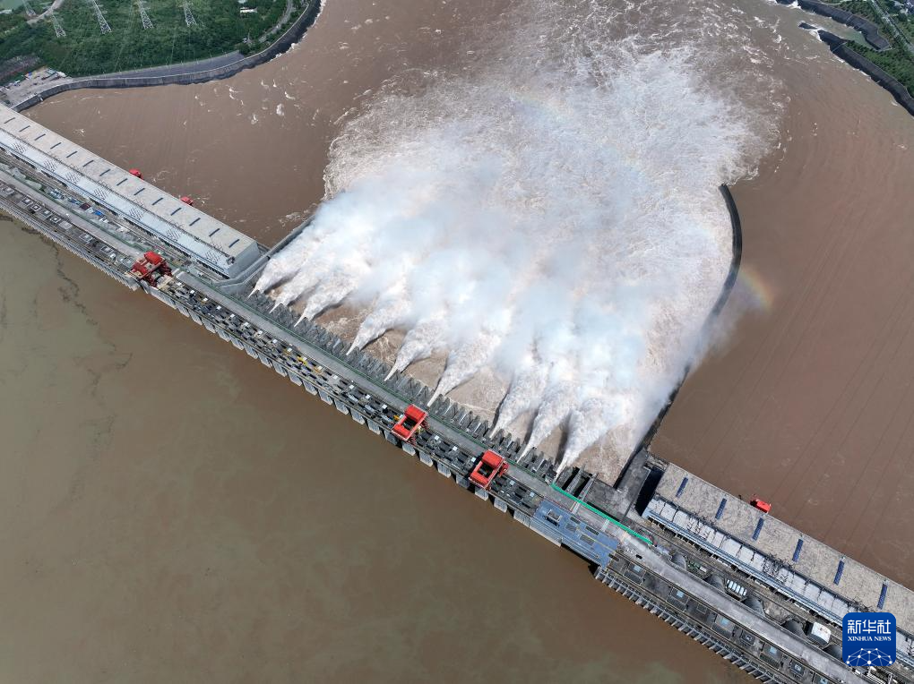 7月15日,三峽水庫開啟9個泄洪孔泄洪。