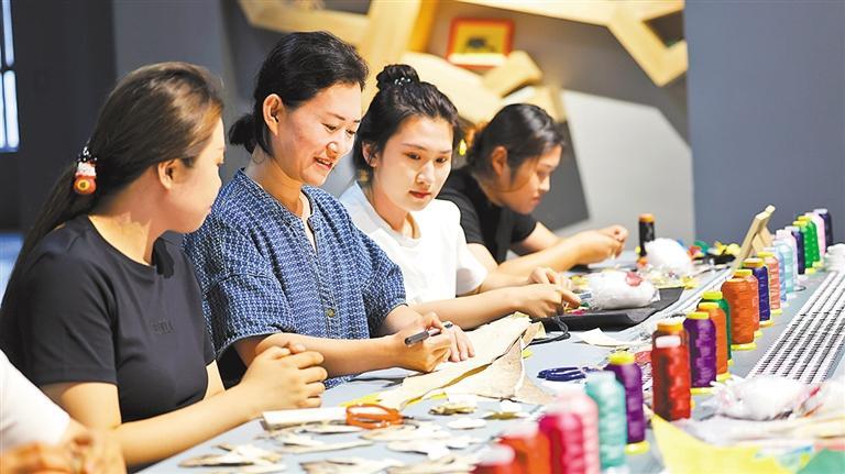 7月22日,松原市鼎潤文化創(chuàng)意產(chǎn)業(yè)園員工在制作魚皮畫。作為吉林省非遺項目,魚皮畫多次作為松原禮物走向世界。