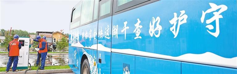 7月23日,國網(wǎng)松原供電公司黨員服務(wù)隊在查干湖捺缽廣場附近檢查充電設(shè)備。查干湖景區(qū)最大限度使用清潔能源和低耗能設(shè)備,確保景區(qū)好生態(tài)。