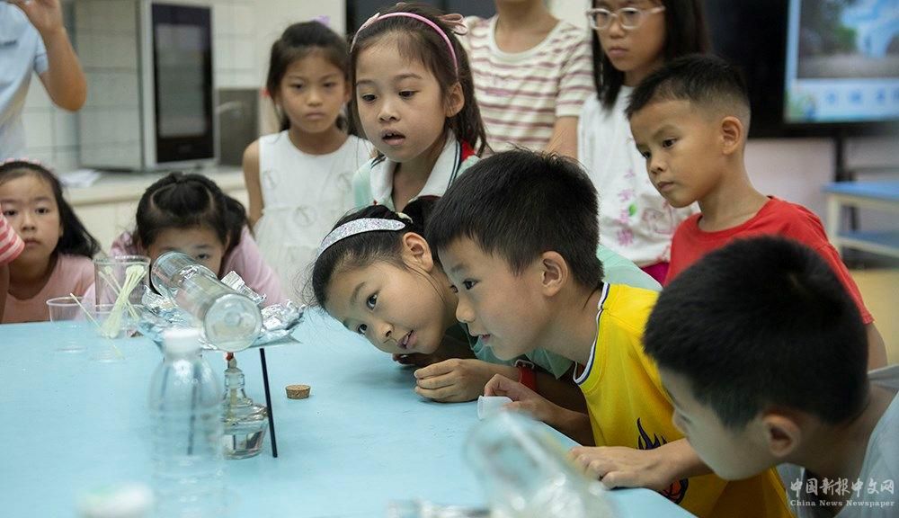 △安徽科技館,小朋友觀察海水淡化科學(xué)實(shí)驗(yàn)。
