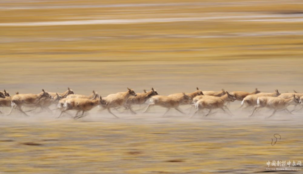 2024年6月13日,遷徙中的藏羚羊在西藏羌塘國家級自然保護(hù)區(qū)奔跑。