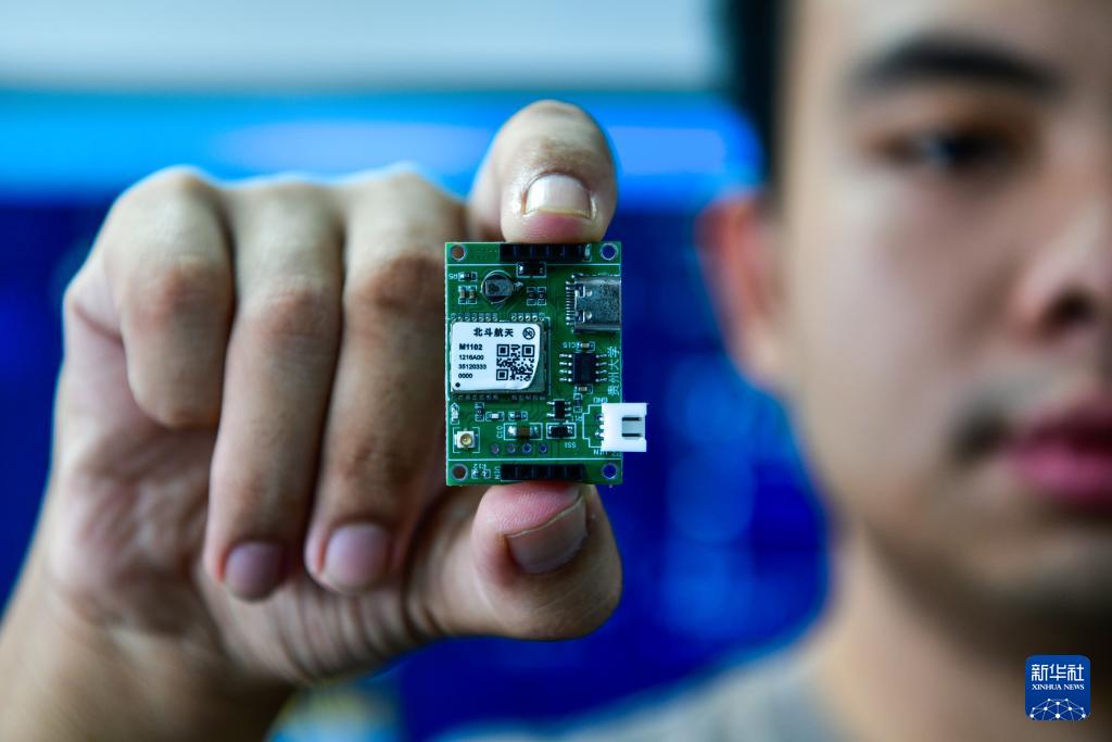 8月29日,學(xué)生在貴州大學(xué)省部共建公共大數(shù)據(jù)國家重點實驗室展示一款高精度北斗定位芯片。